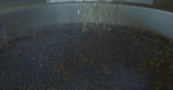 Les fèves de cacao torréfiées passent à l’étape du concassage pour détruire la coque qui entoure le grain de cacao. Ensuite, c’est l’étape du tamisage pour expulser les éclats de coque de l’agglomérat de fèves torréfiées. On obtient le grué de cacao, le véritable cœur des fèves torréfiées.