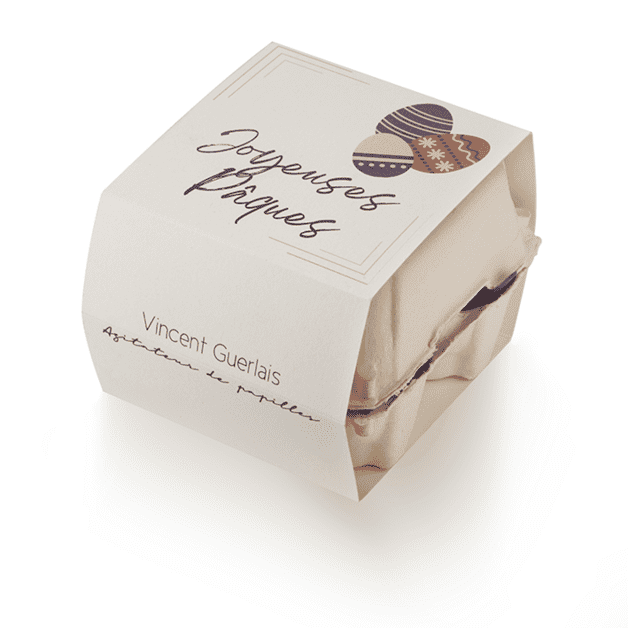 Cadeau idéal pour Pâques, cette boite renferme 4 œufs gourmands reprenant les saveurs et textures de vos spécialités Vincent Guerlais préférées.