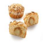 Garnie d'un tendre caramel et d'une généreuse crème vanillée, elle vous envoûtera par sa tendresse et son moelleux. Son enveloppe craquante parsemée d'éclats de noisettes vient sublimer cette viennoiserie qui saura raviver de doux souvenirs d'enfance.