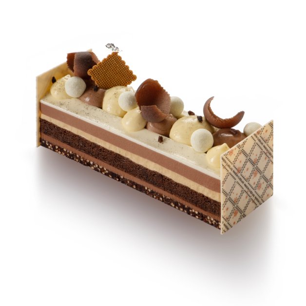 Ingrédients : CREME (Crème de LAIT, stabilisant : carraghénanes (extrait d’algues marines)), Chocolat noir, Chocolat au LAIT, Beurre de cacao, Poudre de cacao et Pâte de cacao (Fèves de cacao, sucre, beurre de cacao, émulsifiant : lécithine de tournesol, extrait naturel de vanille, poudre de LAIT), OEUFS, Sucre, Eau, BEURRE, LAIT, Mascarpone (crème de LAIT, LAIT, correcteur d'acidité : acide citrique), NOISETTES, Farine de BLÉ, AMANDES, Sucre muscovado , Poudre de LAIT, Quinoa soufflé, Biscuit finement émietté (farine de BLE, sucre, BEURRE, LACTOSE, protéines deLAIT, sel, extrait de malt : ORGE, poudre à lever : E500ii), Gélatine de boeuf, Gousse de vanille, Fleur de sel, Dextrose monohydraté, Pectine, Épaississant : Gomme de xanthane