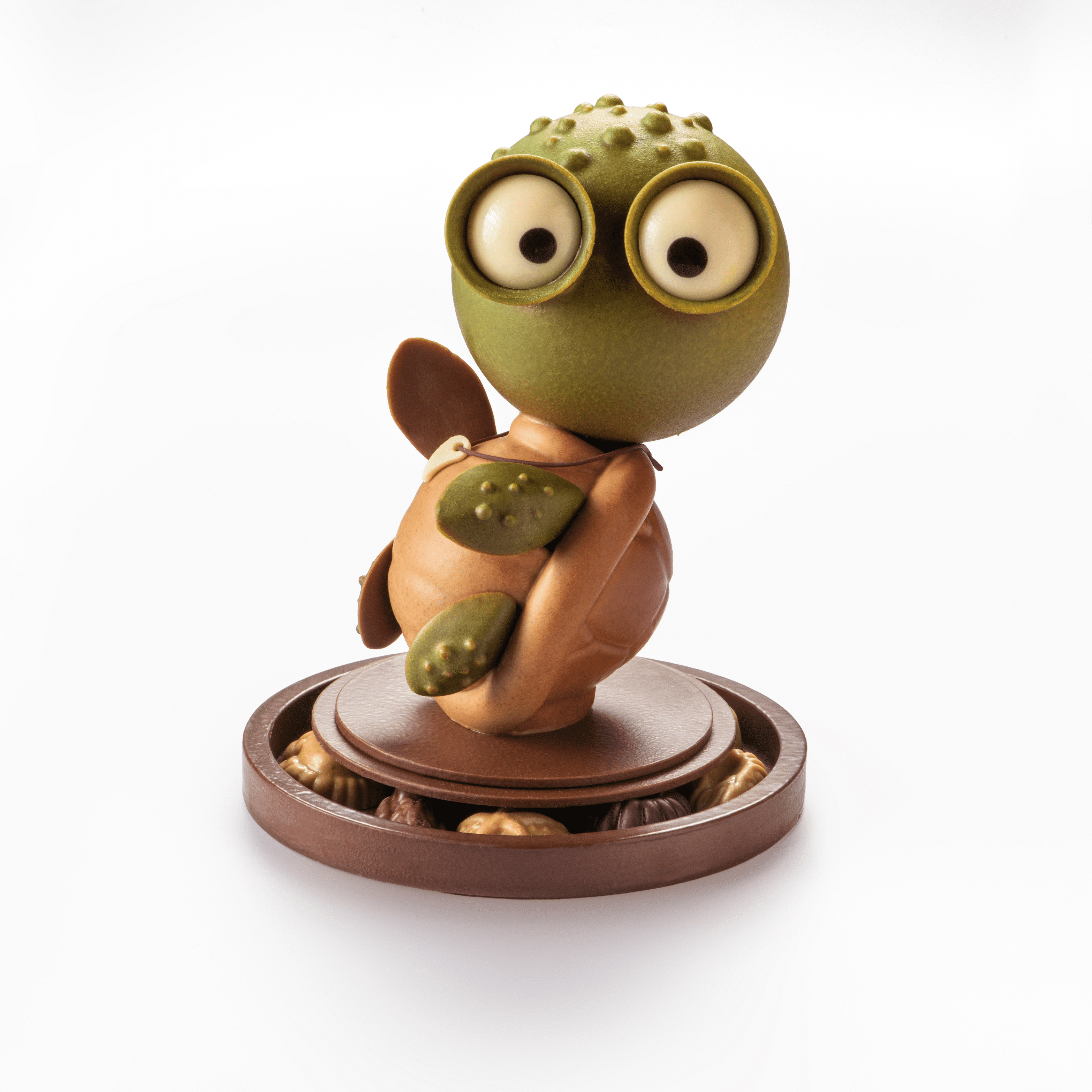 Sous son apparence à croquer, cette petite tortue révèle un travail minutieux du chocolat, avec une attention particulière portée aux moindres détails.