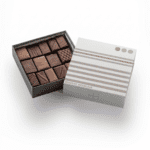 À l’intérieur, découvrez un assortiment de notre gamme de bonbons de chocolat : des amandes douces aux noisettes qui servent à la confection des pralinés, en passant par des épices aux accords subtils… sans oublier l’élément roi au parfum si délicat : le chocolat.