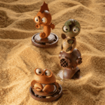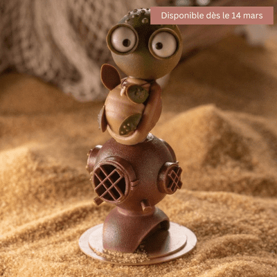 Sous son apparence à croquer, cette petite tortue s’accompagne d’un scaphandrier délicatement travaillé, comme tout droit venu des profondeurs marines.
