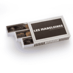 - Gianduja – Noisette : madeleine garnie d’une crème de noisettes, recouverte de noisettes caramélisées et enrobée de chocolat noir.