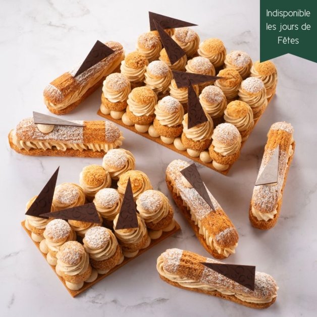 Ingrédients : BEURRE, Sucre, NOISETTES, OEUFS, LAIT, Farine de BLÉ, AMANDES, Eau, Chocolat de couverture au LAIT et Beurre de cacao (Sucre, beurre de cacao, LAIT entier en poudre, fèves de cacao, émulsifiant : lécithine de tournesol, extrait naturel de vanille), CRÈME (Crème de LAIT, stabilisant : carraghénanes), Amidon de maïs, Poudre de LAIT, Sel