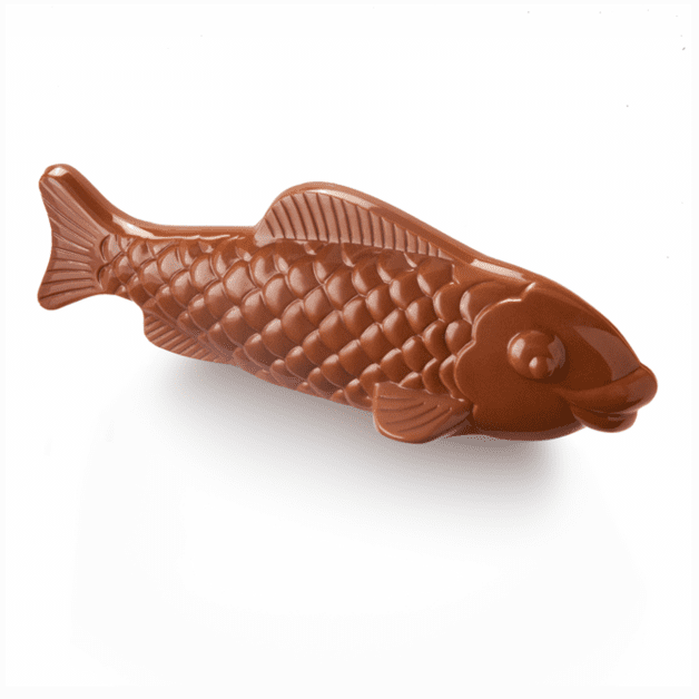 Laissez vous tenter par ce poisson en chocolat noir, lait ou blanc garni d'un assortiment de fritures chocolatées et de toute une collection de petits œufs gourmands.