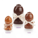 Craquez pour nos poussins en chocolat noir, lait ou blanc garnis d'un assortiment de fritures chocolatées et de toute une collection de petits œufs au chocolat.