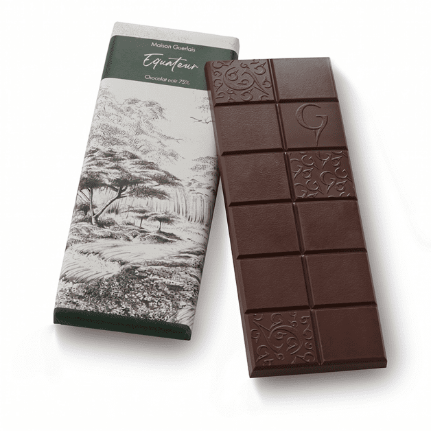 Chocolat noir pure origine Equateur 75% de cacao minimum.