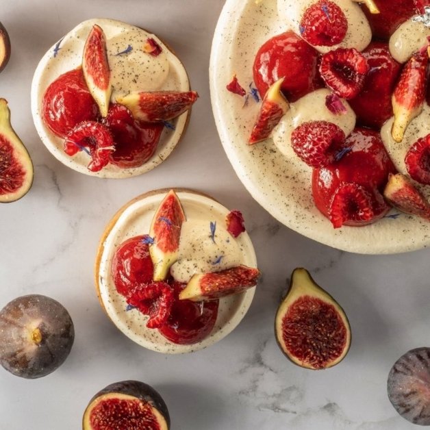 Vincent Guerlais et son équipe ont le plaisir de vous dévoiler sa nouveauté gourmande, inspirée par la douceur automnale et le mariage raffiné des fruits : la figue et la framboise.