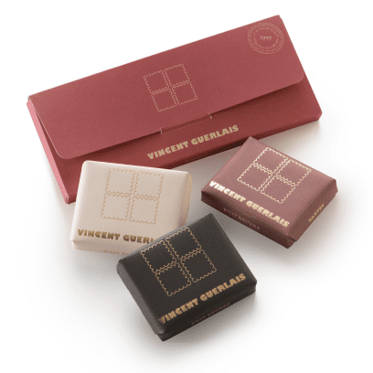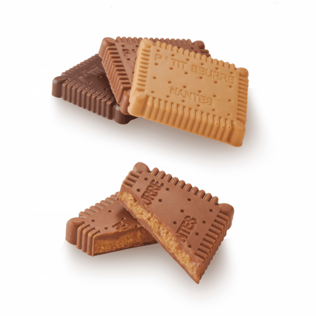 Clin d'œil chocolaté au célèbre biscuit nantais, retrouvez les 3 P'tit Beurre by Vincent dans cet écrin de poche.